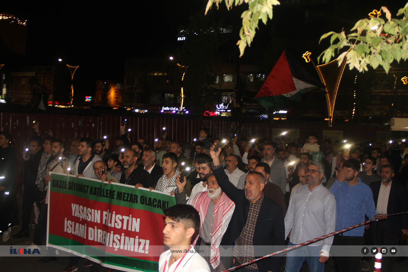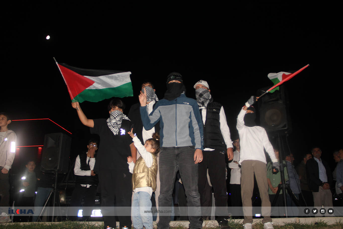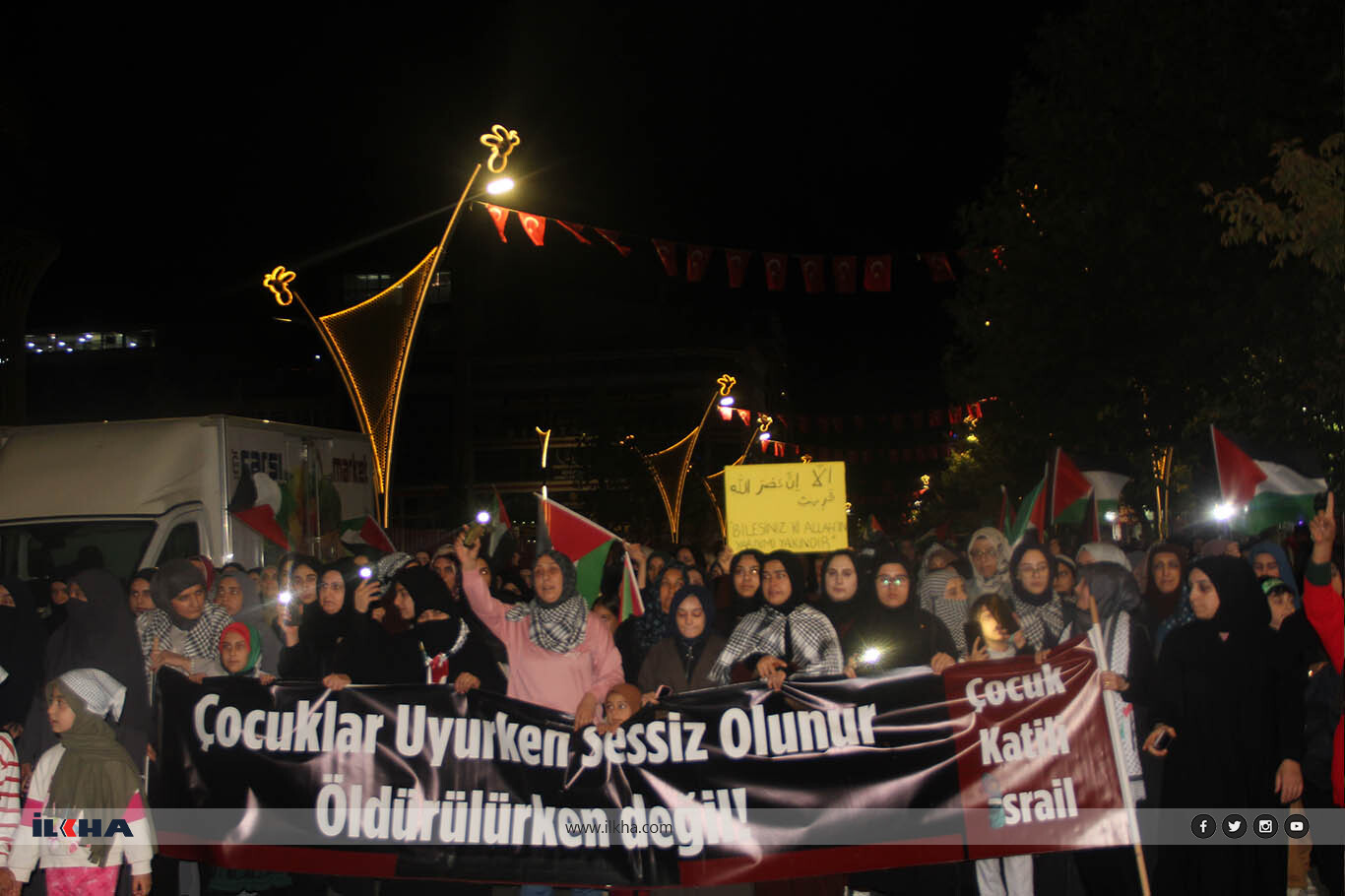 Hacı Hıdır Camii önünde toplanan kalabalık, ellerinde Filistin bayrakları, dövizler ve destek brandalarıyla Telekom Kavşağı’na kadar yürüdü. Yürüyüş boyunca sloganlar atan vatandaşlar, Gazze halkıyla dayanışmalarını dile getirdi.